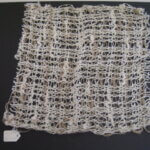 Fabric Sample – Tan and natural wool and novelty yarn, leno lace weave.