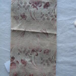 Sample of late 18th century Rt. side, French fabric. Dusty rose, light rose, natural and brown, with diamond, leaf and floral pattern.