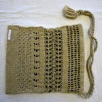 sample woven by Nell Znamierowski for her book Step-by-Step weaving page 79 purse with braided draw string warp and weft linen leno, mexican lace and spanish lace techniques lined with black fabric