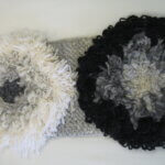 Sampler – Pile variations. Grey and cream and black. Circular pattern. Wool, cotton and some synthetic.